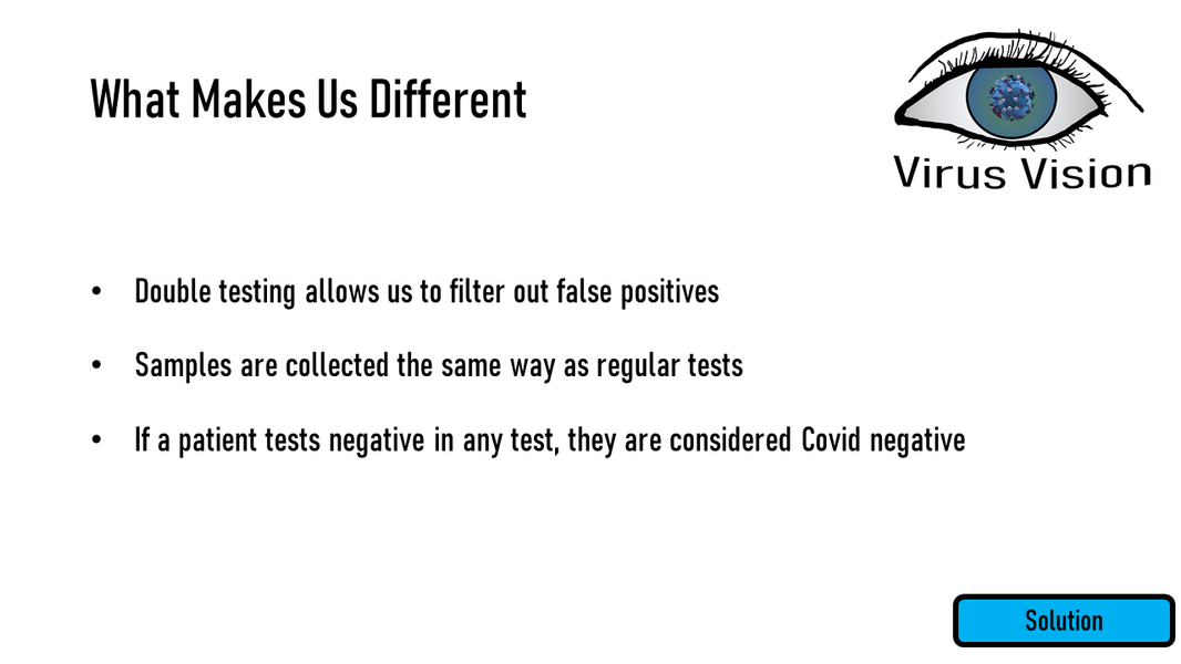 My pitch was an augmented Corona Virus testing system, designed to replace the surveillance testing system used by my university. My system was developed to use matrix operations to reduce false-positive cases that are found using the testing pool method utilized by surveillance testing.